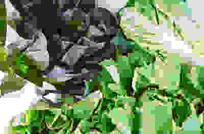 Spinach, lettuce, rocket – any mix of leaves that you have in the fridge