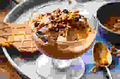 No-churn peanut butter ‘ice cream’ with caramel sauce