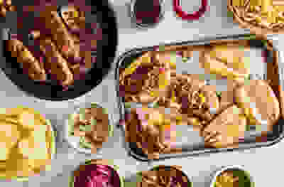 Pomegranate & lemon harissa sticky sausages
