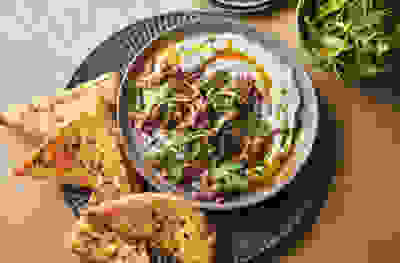 Middle Eastern-style beef with garlic flatbreads & yogurt