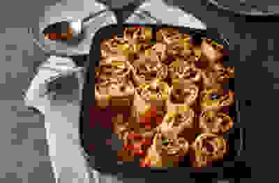 Feta, pistachio and pomegranate bake
