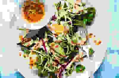 Radish and lettuce slaw with peanut-ginger dressing