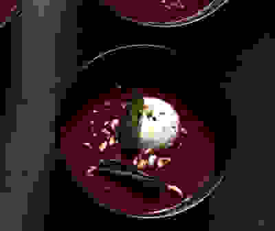 Roast beetroot, sweet potato & black garlic soup