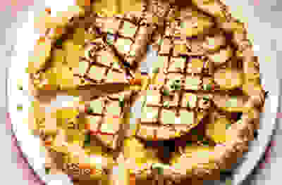 New potato, shallot & manouri tart
