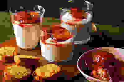 Spiced plum & coconut pots with coconut cookies