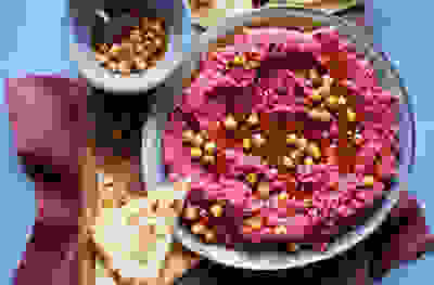 Beetroot houmous with spiced crunchy chickpeas