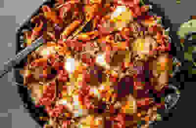Harissa meatball pasta bake