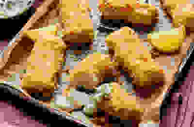 Homemade fish fingers, chips & herby mayo