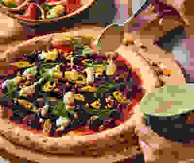 Harissa-roasted veg tart with herby goat's cheese