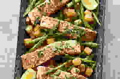 Salmon, asparagus & new potato bake