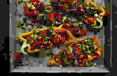 Roast peppers stuffed with herbs and lentils