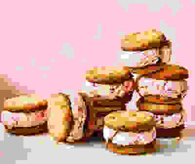 Raspberry ice-cream sandwiches