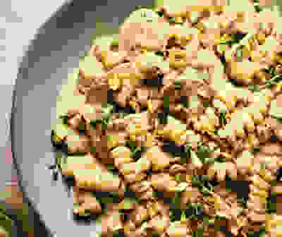 Mushroom, tahini & pistachio pasta