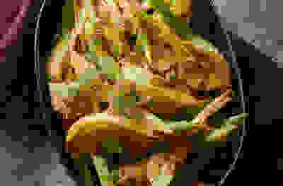 Chicken thighs with pearl barley, chestnuts & juniper