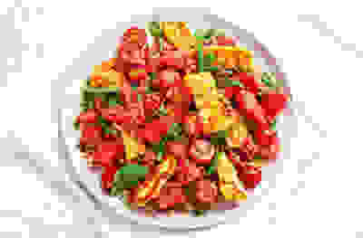 Roasted red pepper, aubergine & freekeh salad