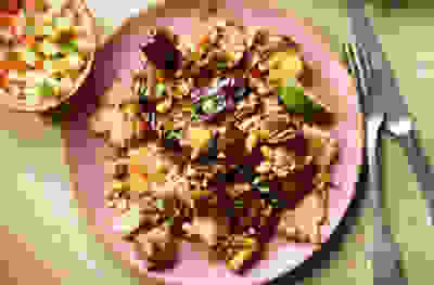 Chicken & pepper fajitas with feta and a pickled fennel slaw