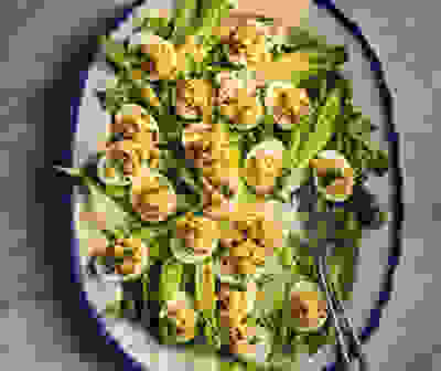 Thai-inspired peach salad with trout
