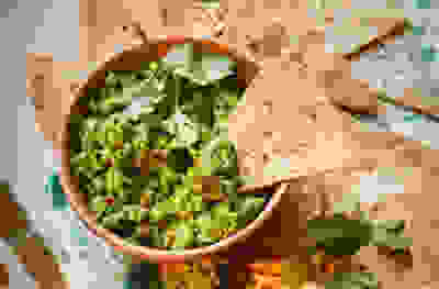 Paneer, red onion & pepper traybake with mint and jalapeño salsa