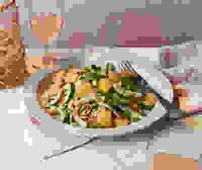 Hoisin chicken & lentil noodle salad with crispy kale