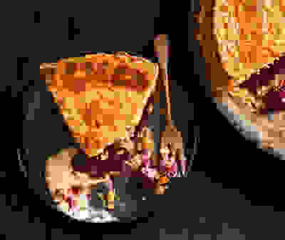 Boozy orange & roasted strawberry tart