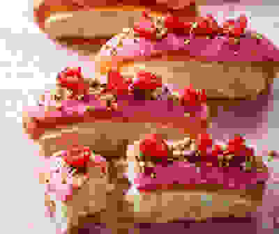 Raspberry iced buns
