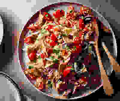 Hot smoked mackerel noodle salad
