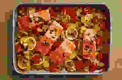 Med-style sea bass traybake