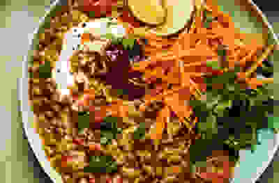 Quick tomato, coconut & coriander dal