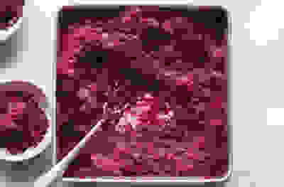 Marmalade-roasted beetroot with herby goat’s cheese and beans