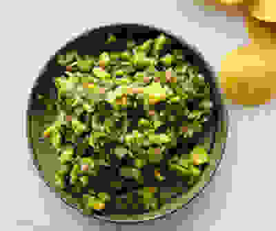 Avocado and cucumber chopped salad with green shatta