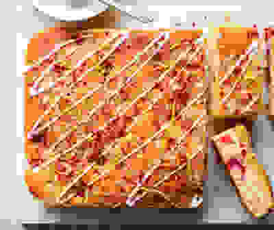 Coconut & raspberry traybake with pink custard