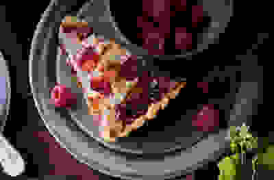 Raspberry & coconut macaroon tart