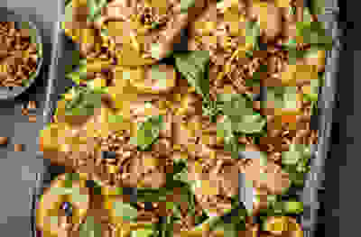 Chicken & spinach curry with fast flatbread
