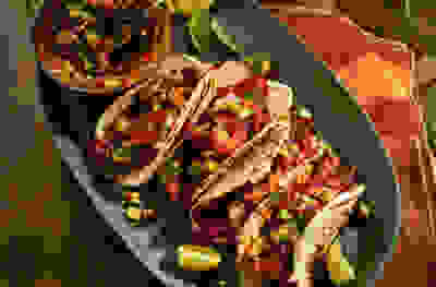 Spiced chicken & sweetcorn tacos