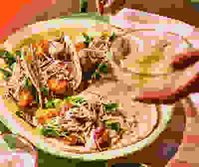 Guinness-braised beef tacos with pink pickled onions