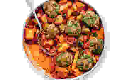 Root vegetable casserole with herb dumplings