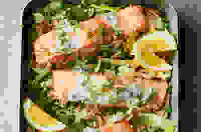 Asparagus, pea & mint salad with lamb’s lettuce and lemon and chive dressing