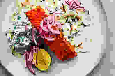 Dan Doherty's Jerusalem artichoke gratin with sweet onion and hazelnut crumble