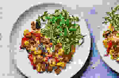 Gnocchi with roasted romano peppers, aubergine, chilli and rocket
