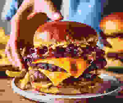 • Pancetta and melting Taleggio burger with agrodolce onions