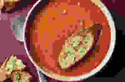 Creamy tomato soup with goat’s cheese & poppy seed scones
