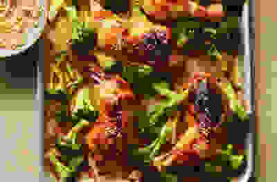 Sticky marmalade chicken traybake