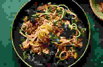 Kale, garlic & anchovy linguine with chilli crumbs