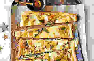 Honey-glazed parsnip & potato tart with Stilton & rosemary