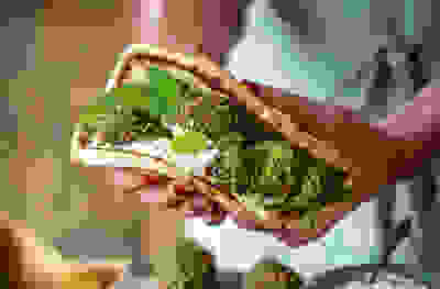 Falafel flatbreads with zhoug, yogurt & griddled courgettes