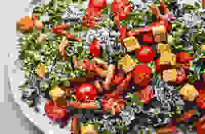 Chargrilled vegetable & orecchiette salad with fresh pesto and rocket