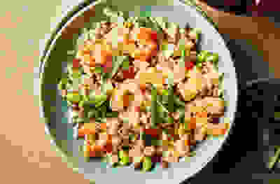 Prawn & edamame rice with salad onions and soy