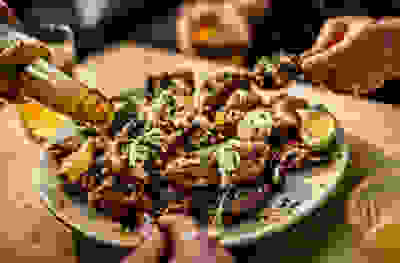 Pulled beef nachos with pumpkin seed & avocado salsa
