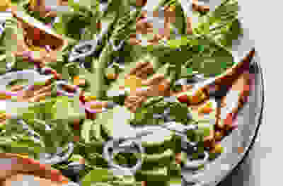Warm chicken salad with apple, celery & cheesy croutons