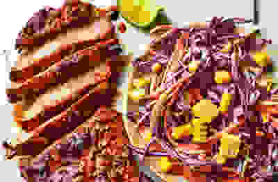 Glazed pork steaks with sweetcorn slaw